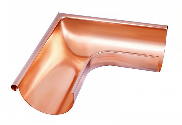 Медь, используемая в производстве угла желоба, отличается высокой прочностью и долговечностью. Со временем медь приобретает характерный патинированный вид, что не только не ухудшает ее свойства, но и придает эстетическую привлекательность всей водосточной системе.